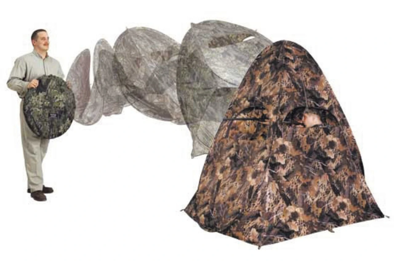Opsætning uden montage – folder sig ud på ca. 5 sek. og foldes sammen på ca. 10 sek. Af vandafvisende nylon og med plads til to personer, lukker lugte inde og forhindrer synlige skygger udenfor.