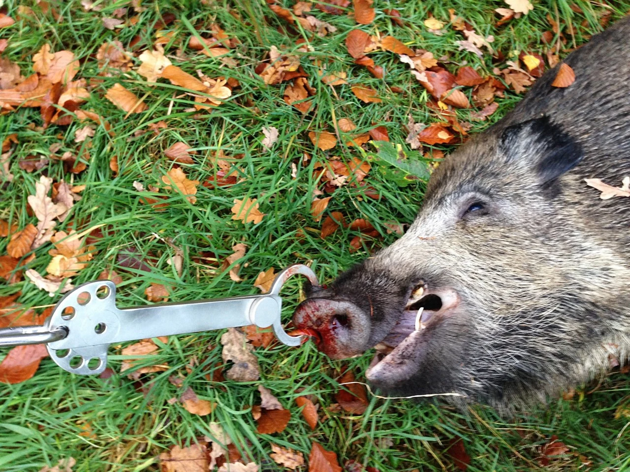 Luksusversionen er lavet af uforgængeligt V2A-rustfrit stål. Vildtgalgen kan dels bruges som bjærgeudstyr i forbindelse med en bjærgesele og karabinhage, og dels som en udfoldet opbrækningskrog til at hænge vildtet op med. Med seks forskellige vinkelpositioner (0 ° til 180 °) og krogbredde, der kan foldes ud til 32-45 cm passer den til alle typer klovvildt. Også velegnet til slagtning af harer og kaniner. Mål 260 x 80 x 20 mm. Vægt 630 g