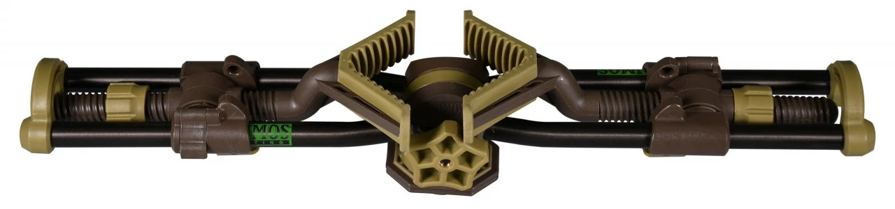 Støtten kan let skiftes med den gummierede V-formede etpunkts geværstøtte. Takket være den individuelle og trinløse justering af længde og højde, er Primos topunkts geværstøtte velegnet til alle lange våben. Våbenholderen kan klappes sammen og reducerer således størrelsen under transport.