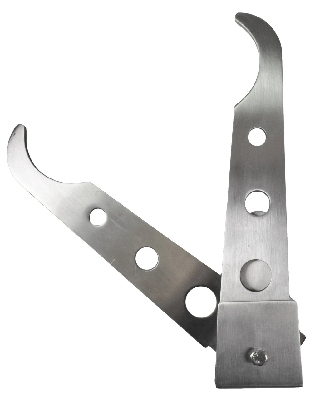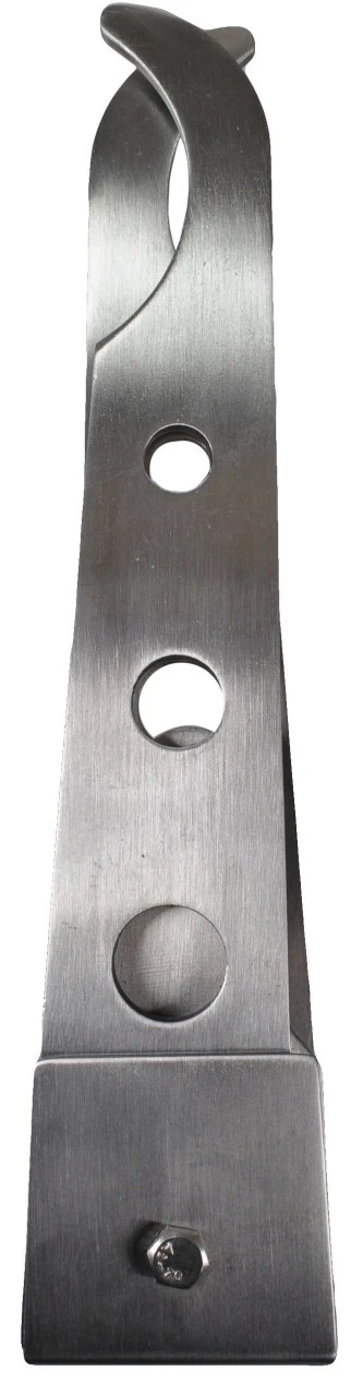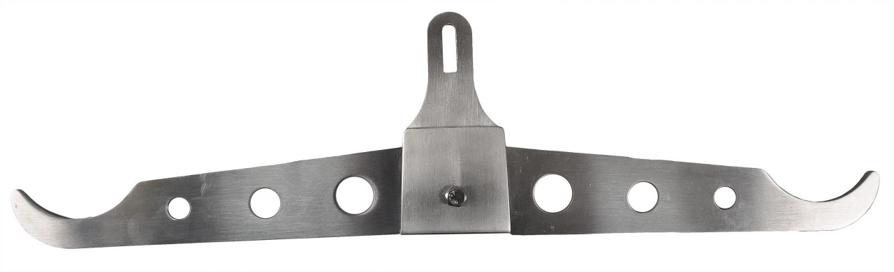 Med huller til at hænge kødkroge, også til mindre hår- og fuglevildt. Rustfri. Bæreevne op til 120 kg. Mål: 60 x 11 cm (foldet). Vægt 760 g.