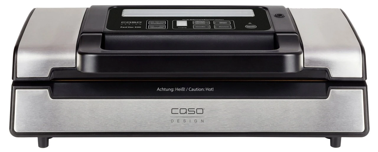 Caso FastVac 500 er en kraftig vakuumpakker. Den dobbelte stempelpumpe (15 liter / min) og den kraftige motor sikrer sikker vakuumering. Enheden tilbyder kammer-vakuum-funktioner samt automatisk vakuumering og forsegling. Kommer med tretrins svejsning og to vakuumtrin. Enheden betjenes og overvåges via soft-touch-betjeningen og det digitale procesdisplay.