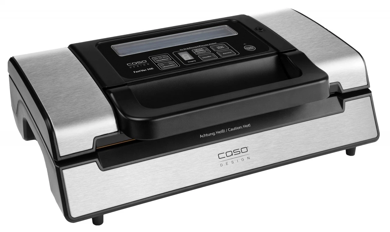 Caso FastVac 500 er et godt alternativ til dyrere enheder, især for mindre virksomheder. Takket være det funktionelle design, fungerer enheden også ganske lydløst (under 68 dB). Vakuumsystemet i rustfrit stål er velegnet til vakuumposer og -ruller. Rullerne kan også svejses manuelt, og den indbyggede kniv gør det lettere for dig at skære dem af efter behov.