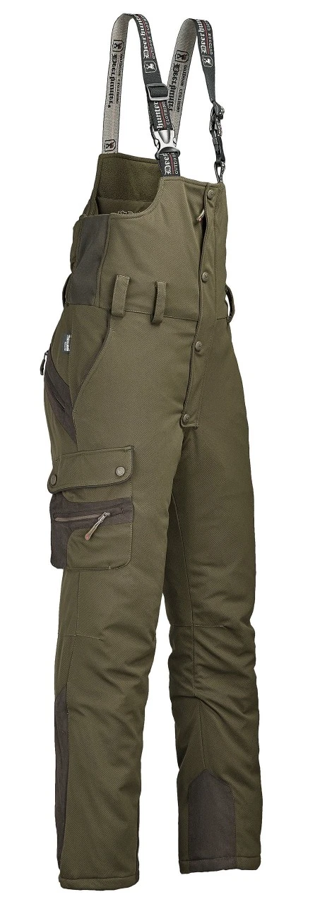 Et alternativ til Muflon bukserne er denne overall med seler der giver ekstra beskyttelse især i vådområder, justerbar talje med elastik, som gør dem yderst behagelige at gå i, to forlommer med ruskindskantning, formede knæ og lynlås nederst på benet. De har stormmanchetter indvendigt ved foden, strik med elastik i siden for behagelig pasform, justerbar talje med elastik bagtil og strikrib i siden, tovejs lynlås i gylpen, forstærkende ruskindsdetaljer, to forlommer med ruskindskantning, en baglomme med lynlås, en lårlomme med afrundet bred åbning for nem adgang og en ekstra lynlåslomme, samt en lårlomme på venstre side med lynlås.