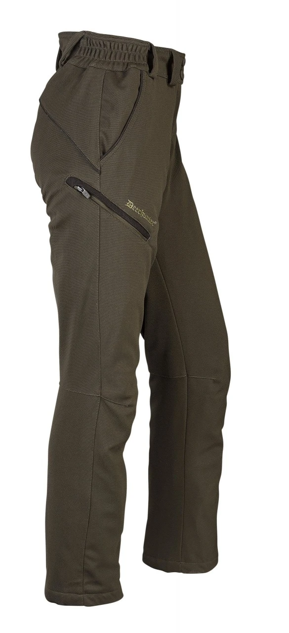 Jagt i al vind og vejr. Deerhunters stilfulde og varmt polstrede dame-jagtbukser, Lady Mary, er vindtætte, vandtætte og åndbare, takket være Deer-Tex membranen. Dame-jagtbukser med en let struktureret yderstof, der følger med på ethvert jagteventyr. Den fine paspoleringer i ruskindslook giver det lille, men fine ekstra.