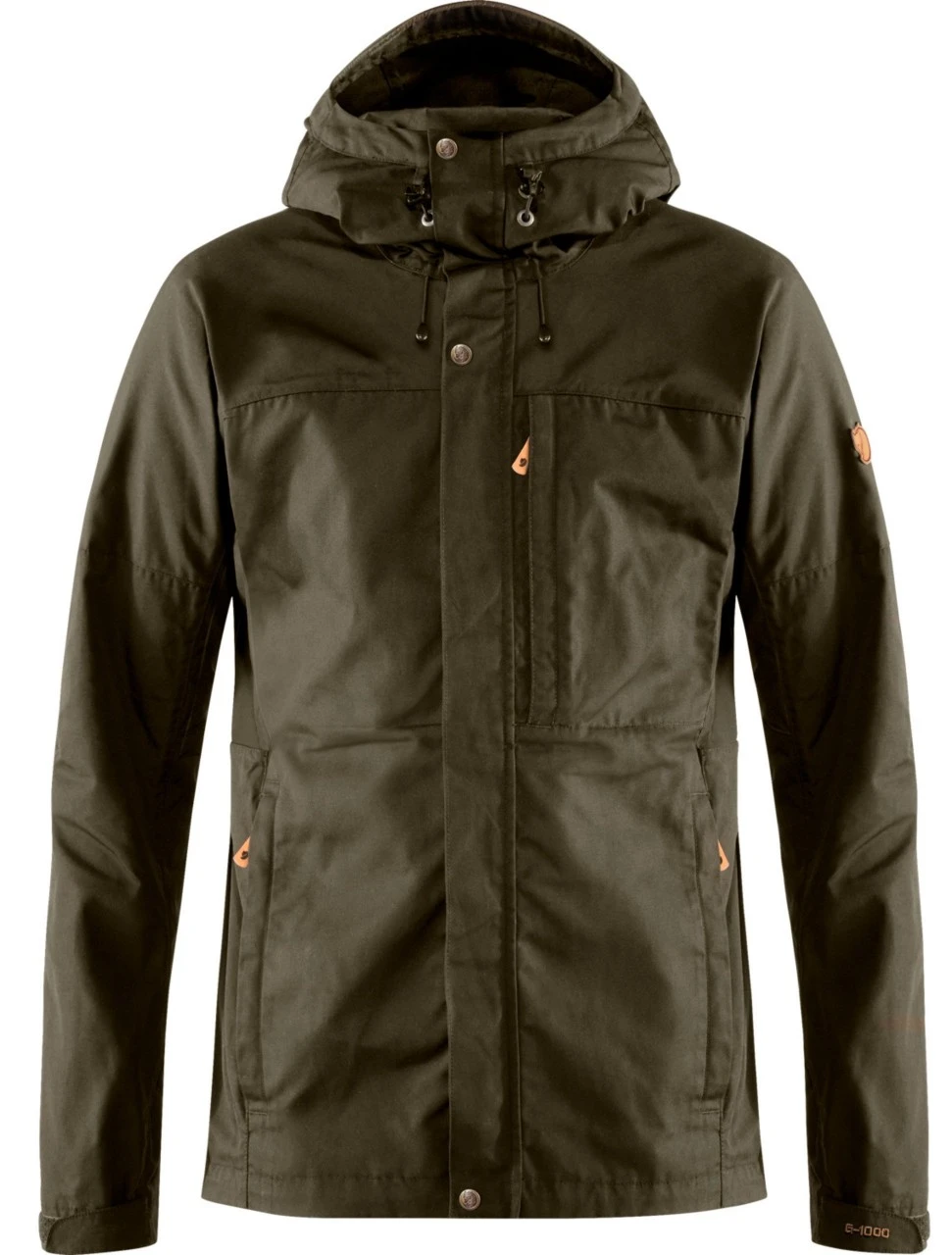 Fjällrävens herrejakke Kaipak er udstyret med to stiklommer med lynlås, en brystlomme med lynlås med en lille mesh-lomme indeni, en inderlomme med lynlås og to andre store inderlommer.