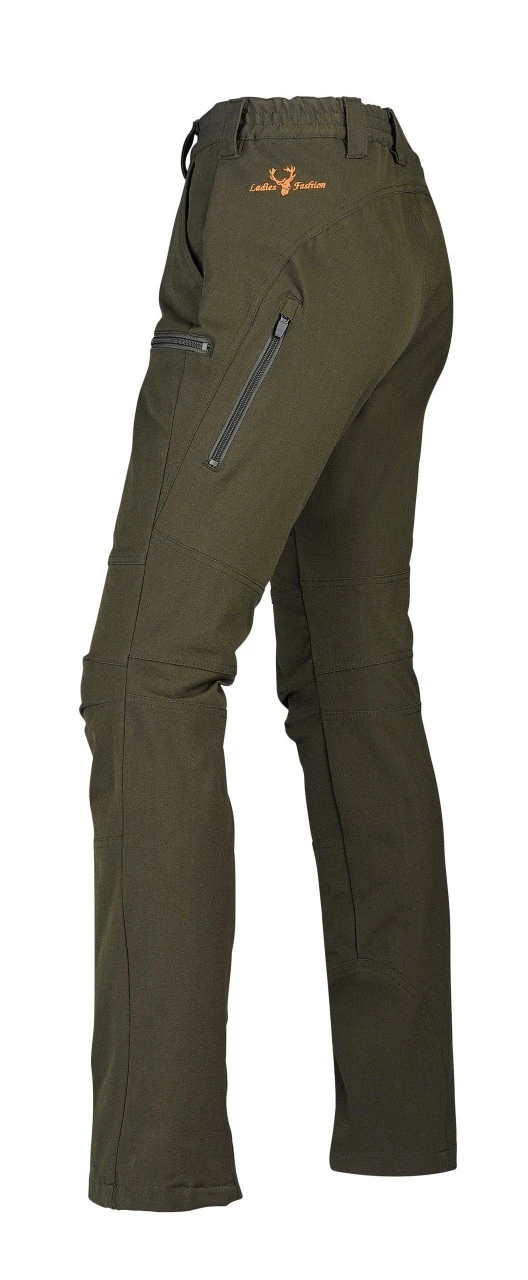 Mottoet for Hubertus tofarvede damejagtbukser, Stretch, er: Tag dem på og hav det godt. Det bi-elastiske 4-vejs stretchmateriale og det sporty snit klarer let enhver bevægelse ved stor jagtaktivitet. Ideel til pyrsch.