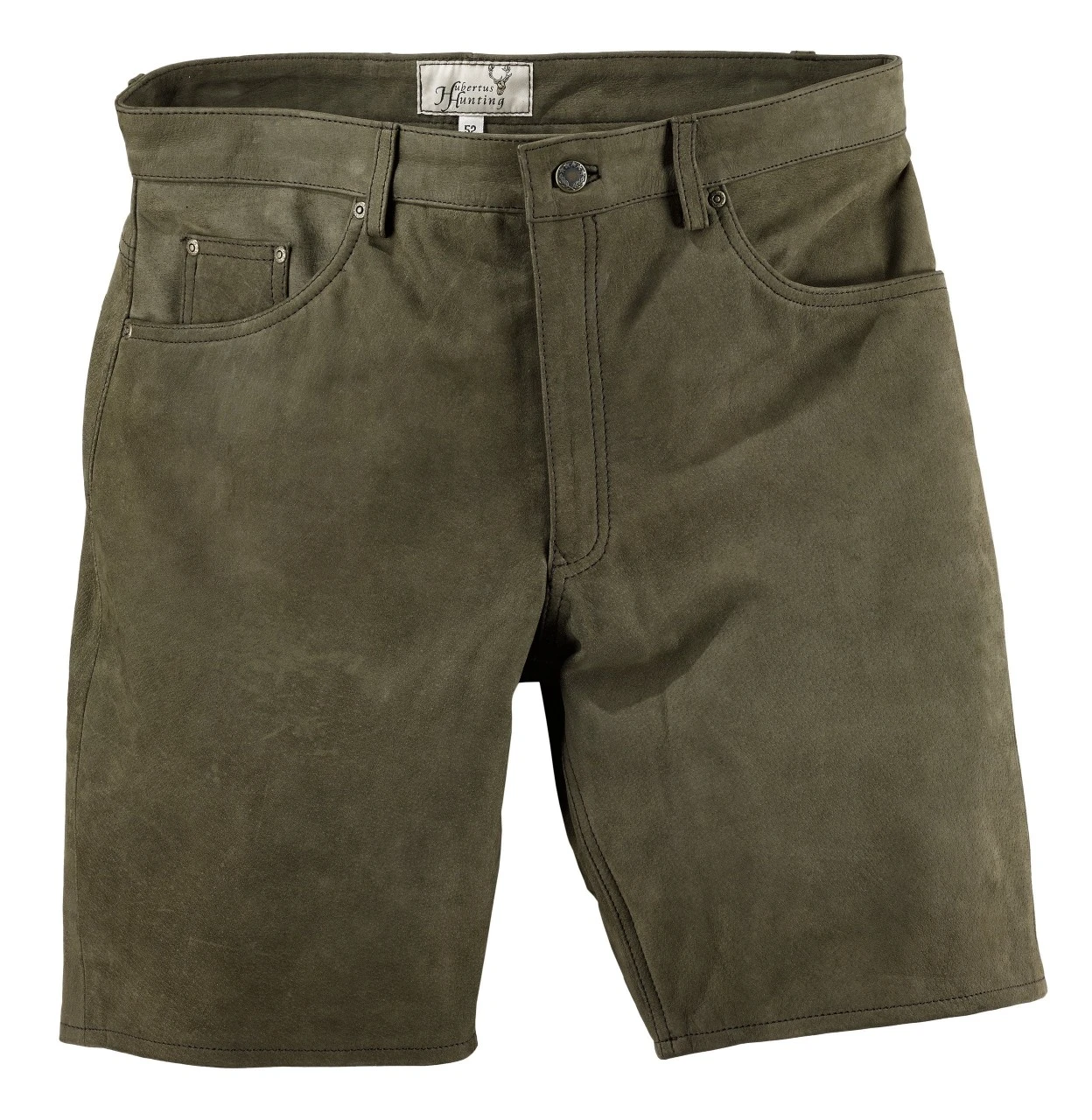 De korte læderbukser lavet af bøffellæder af høj kvalitet i den typiske femlommers stil med knivlomme på højre ben. Den er foret på indersiden med glat polyester og utroligt behagelig at have på.