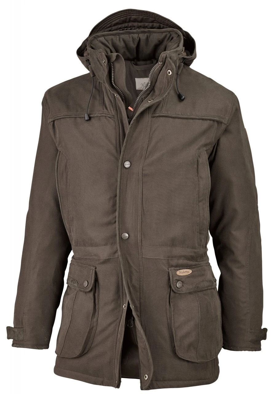 Hubertus herre-termo-jagtjakke, OS 60, med vind- og vandtæt Miporex-membran er skræddersyet til jagtbehovet ved kolde temperaturer og holder dig dejligt varm. Den kraftigt polstrede jagtjakke i bevægelsesvenligt snit har et lydløst, robust yderstof kombineret med en åndbar membran og et glat for.