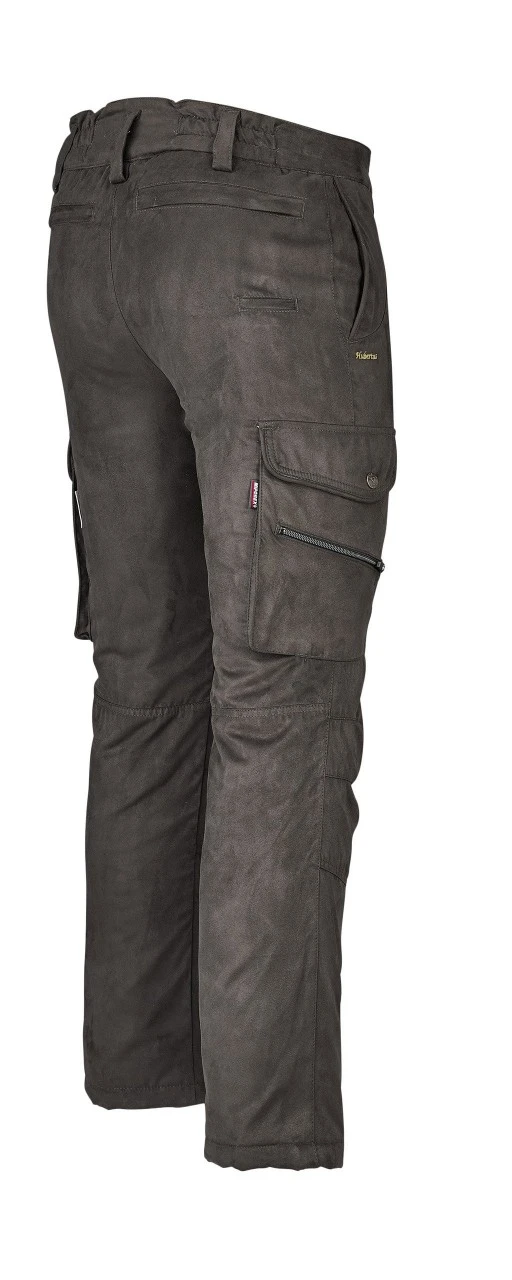 Jagtbukserne Schwarzwald til herrer har mange nyttige lommer: to sidelommer, fire lårlommer, to af dem med klap med trykknap og to med lynlås, to baglommer med skjult lynlås og en praktisk knivlomme.