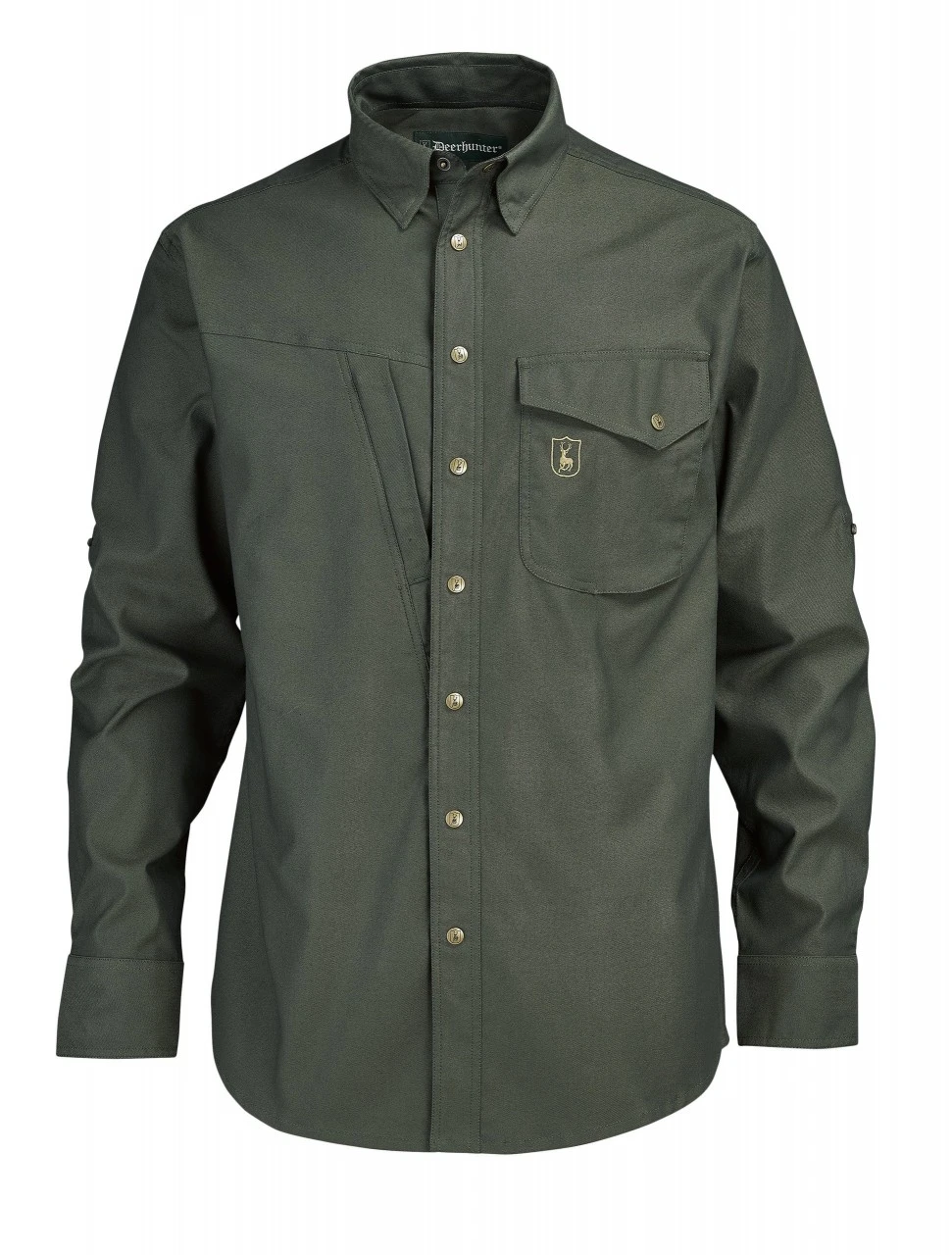 For at opnå komfort ved milde og varme jagtudflugter er den langærmede skjorte Matobo ideel. Den ser moderne og elegant ud og er fremstillet skånsomt over for ressourcerne med en høj andel af genanvendt polyester. Udover at den er behagelig at have på giver den langærmede Deerhunter skjorte Matobo en ekstra fordel. Hvis det bliver varmere end forventet, kan det oprullede ærme fastgøres med knappen på overarmen, så det ikke rutsjer ned ved intensive bevægelser.