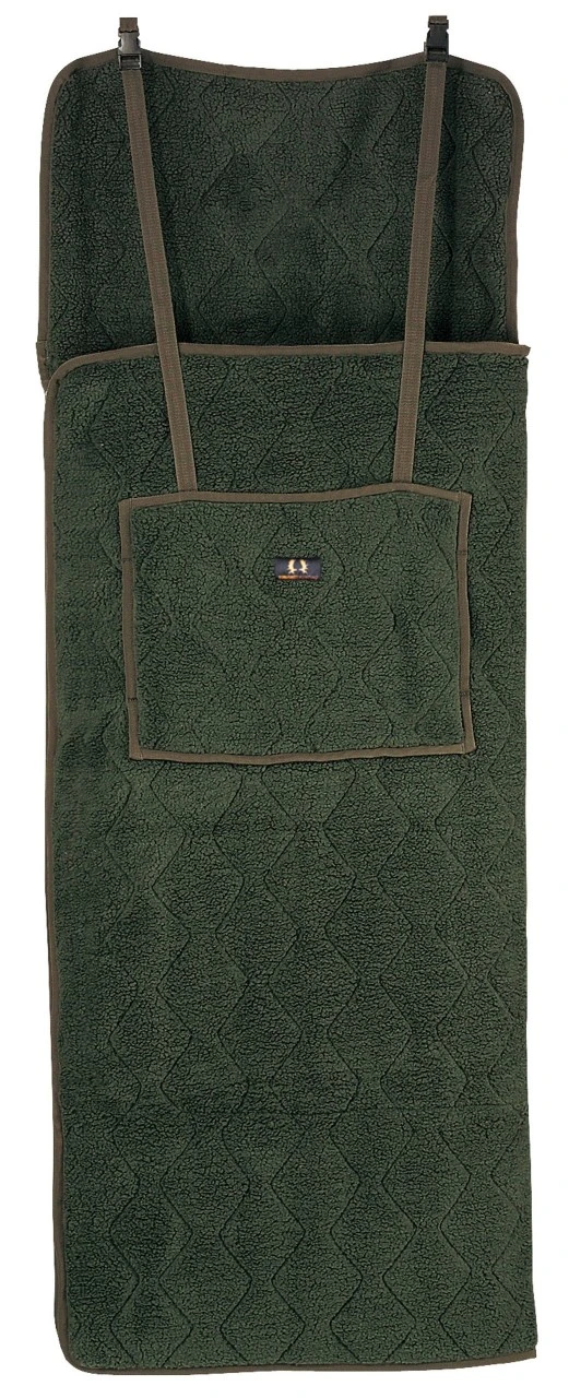 Praktisk, meget varm anstandspose af dobbeltlaget fiberpels i fin diamant-quiltning. Med forlænget ryg, der beskytter hals og nakke. Robust kanttrim. Kan åbnes helt med en tovejs lynlås og bruges som tæppe. Indvendig, smudsafvisende fodpose med lynlåse, der kan vaskes. Forlomme med tosidet åbning, der holder hænderne varme. Det smarte remsystem gør det muligt at justere og sætte anstandsposen fast over skuldrene – eller den sammen aht. nem transport. Ekstra langt greb – til at bære på skulderen. Farve oliven. En størrelse Vægt ca. 3000 g. 70 % polyester, 30 % akryl, fodpose 100% polyester.