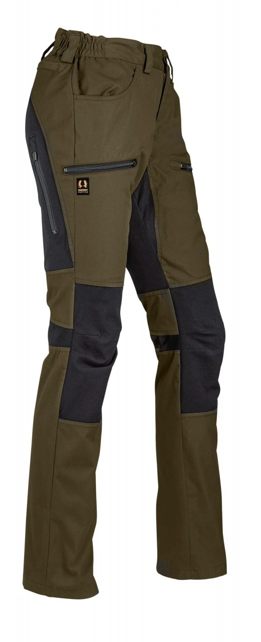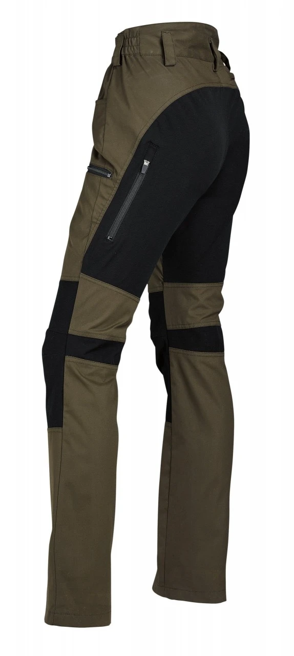 Nordforest Huntings Dame-stretchbukser, Röka, er udstyret med to stiklommer, to benlommer og en baglomme, alle med lynlås.