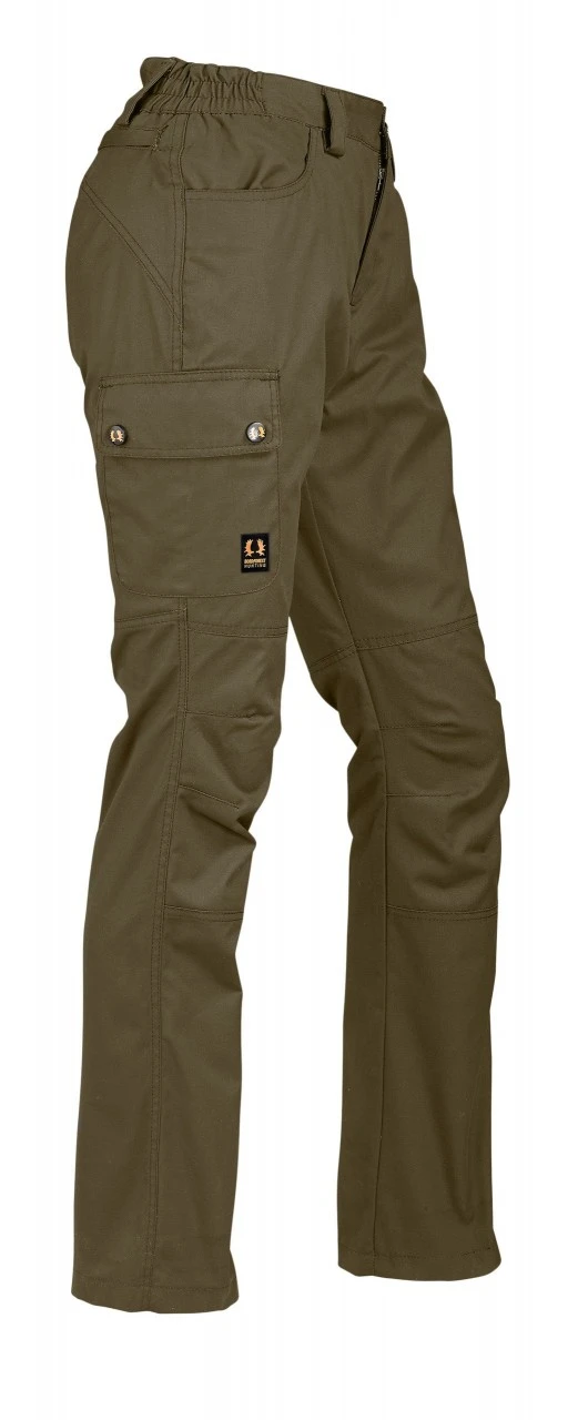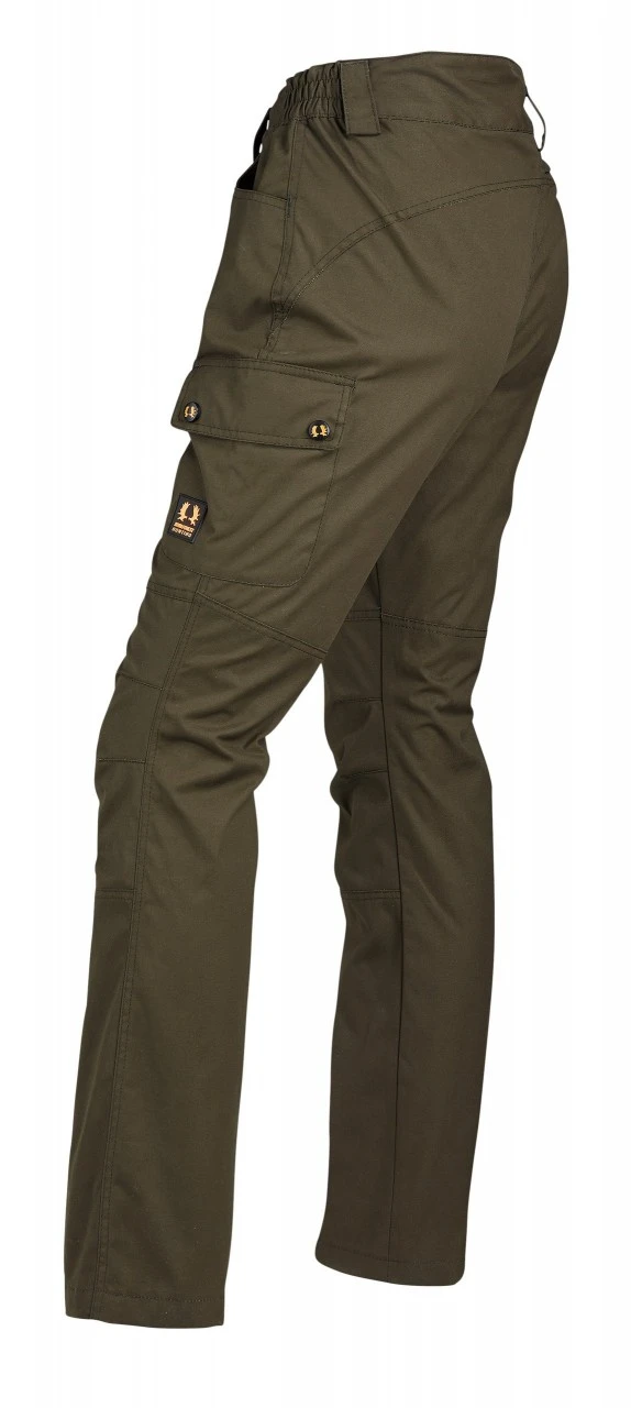 Nordforest Huntings dame-stretchbukser, Nora, er udstyret med to stiklommer, to klaplommer med knap og en baglomme med lynlås.