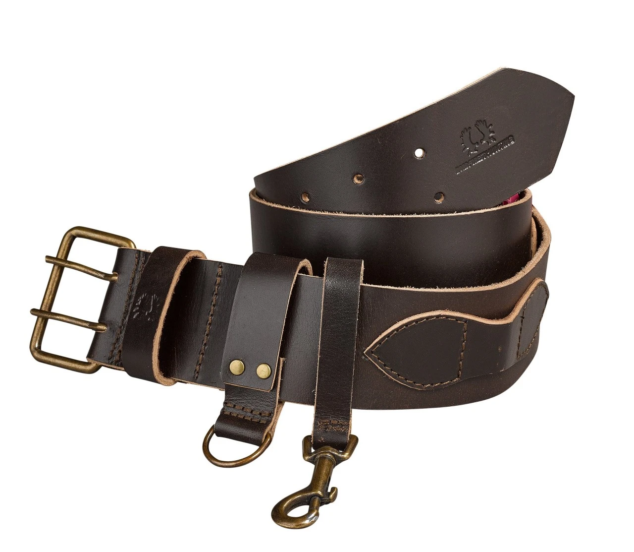 Nordforest Huntings eftersøgningsbælte er lavet af robust, slidstærkt læder og har et dobbelt metalspænde, som er seks cm bredt. Praktisk tilbehør, som nøgler, handsker og meget mere, kan let fastgøres i de to forskydelige læderstropper, en med karabinhage og en med D-ring. Patronetui og førstehjælpssæt med matchende bæltestropper, der kan sættes fast i læderbæltet. Man kan sætte en karabinhage mere i læderstropperne i siden, hvor man kan hænge hundesnoren, eller en rem til at trække og hente vildtet med. Nordforest-logoet er stilfuldt præget.