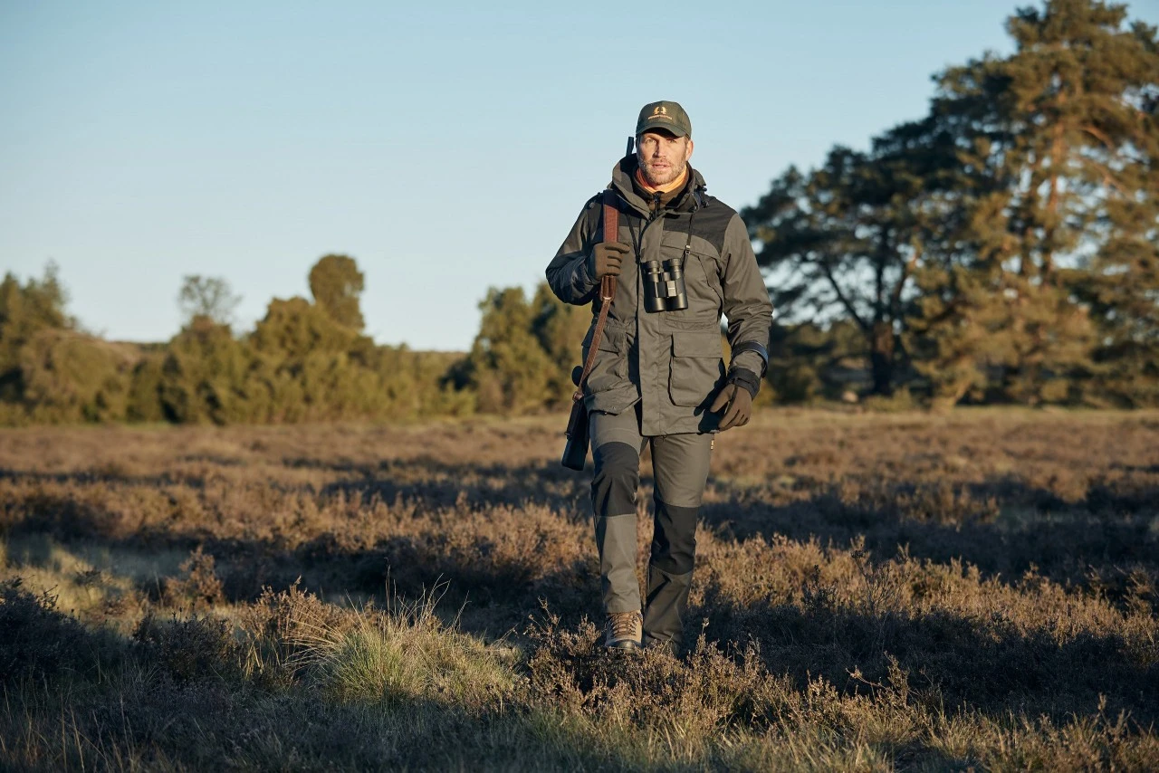 Den vindtætte, vandtætte og åndbare Nordforest Hunting jagtparka Borga til mænd har alle de udstyrsegenskaber, der kan være en god hjælp til en vellykket jagtdag. Parkaen holder, takket være Miporex-membranen, det lette for og løbebåndet i krave, talje og linning, stand mod vejrliget. Løbebåndet på kraven forhindrer desuden, at løv eller nåle drysser ind under kraven på din vej gennem tykningerne under pürschen.
