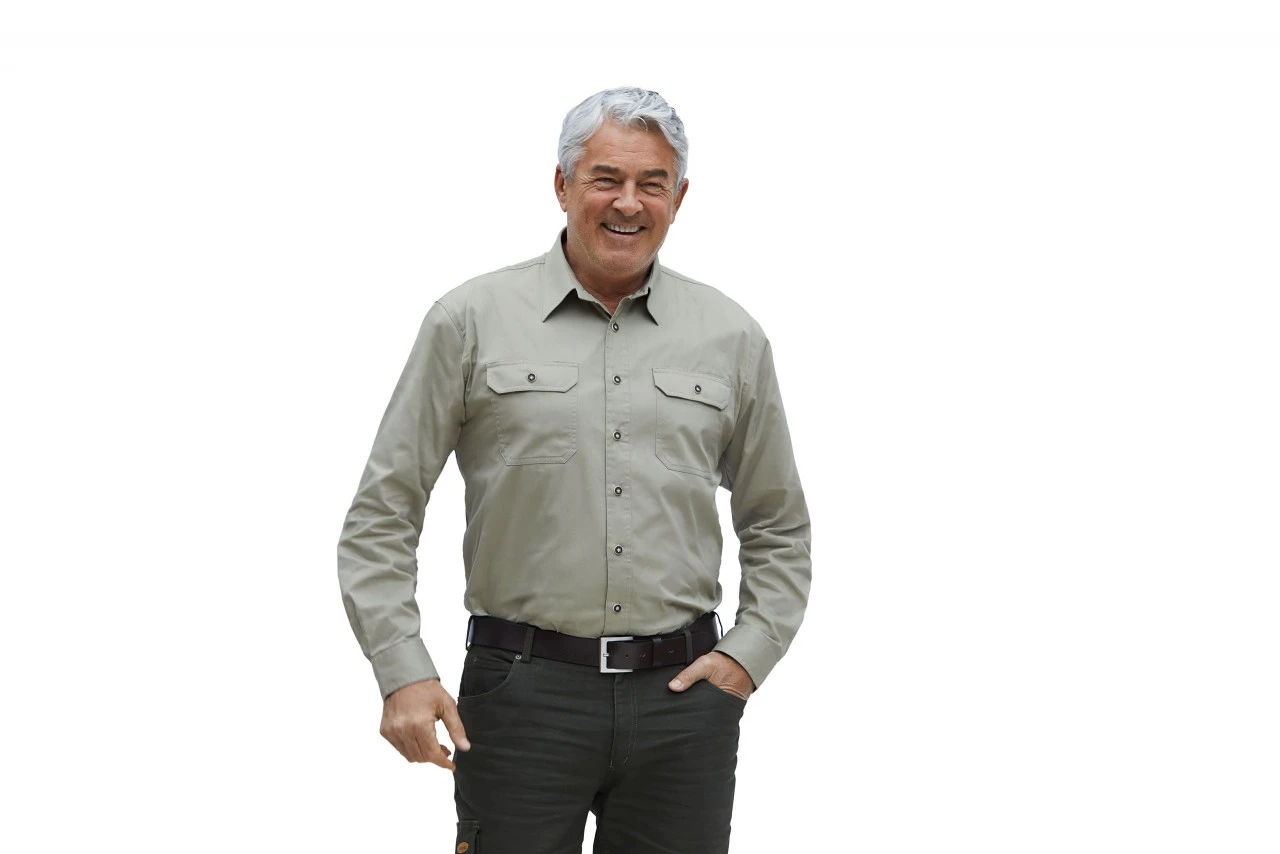 Førsteklasses forarbejdning og bekvem. 2 brystlommer med klap. Knapper i hornimitation. Indstillelige ærmekanter.