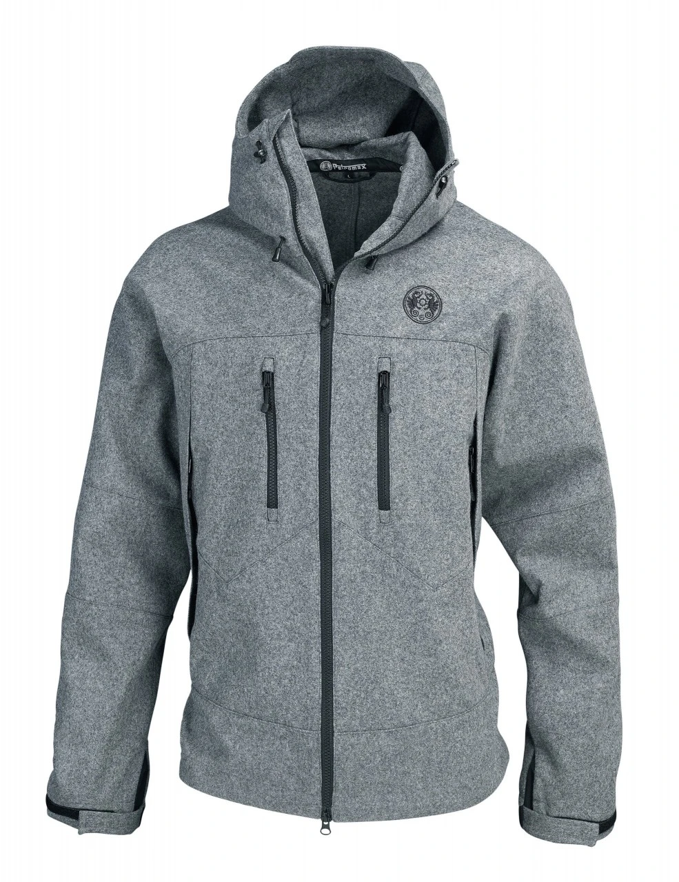 Petromax-lodenjakken Deubelskerl til mænd er udstyret med to store sidelommer og to brystlommer, alle med lynlås og meshfor.