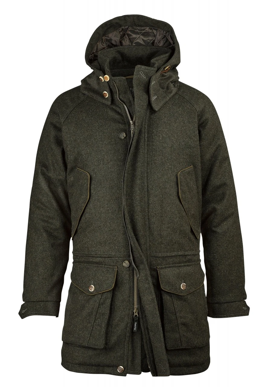 Raschers lodenjakke til mænd er udstyret med to bryststiklommer med klap, to hoftelommer med knappet klap og bagvedliggende stiklommer samt to lynlåslommer og en åben inderlomme.
