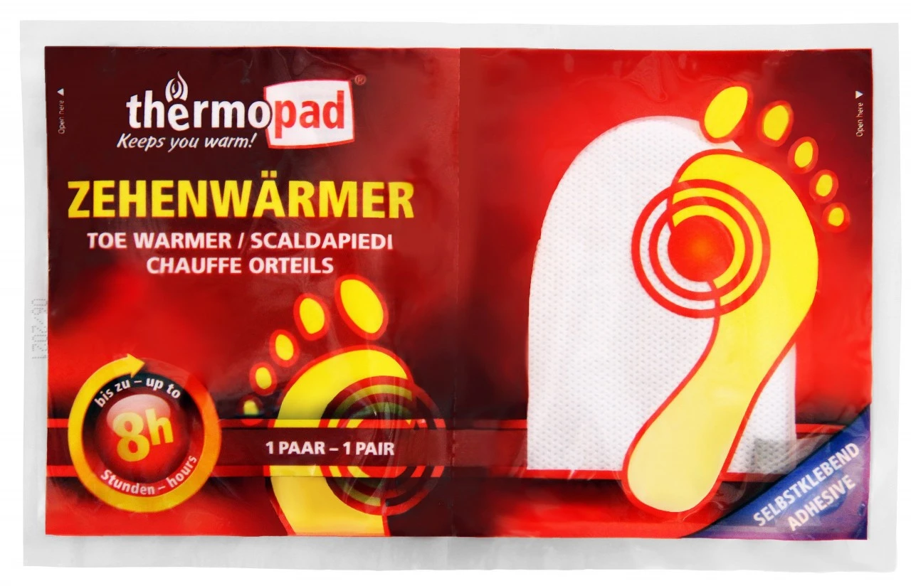 Tynd og let. Fæstnes nemt med klæbesiden mod sokken. Aktiveres ved kontakt med ilt når den åbnes. Giver op til 6 timers varme. Engangs brug.