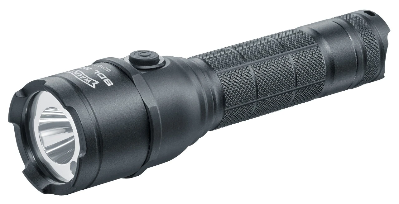 Lommelygten Walther SDL 800 er en kraftig lommelygte til enhver lejlighed. LED’en af typen Cree XM-L2 leverer op til 1000 lumen. Lygten kan reguleres i to trin (1000 og 75 lm). Derudover har den en stroboskop- og en UV-tilstand med bølgelængde på 365 nm.